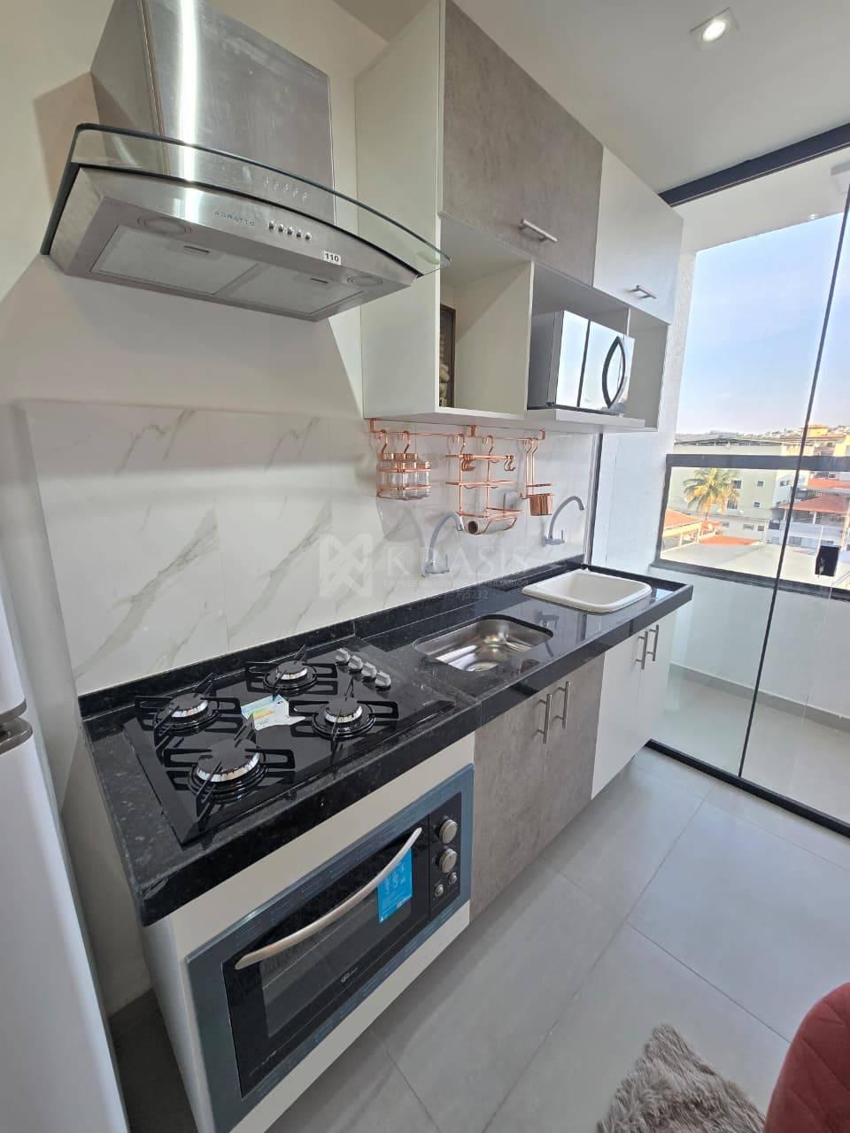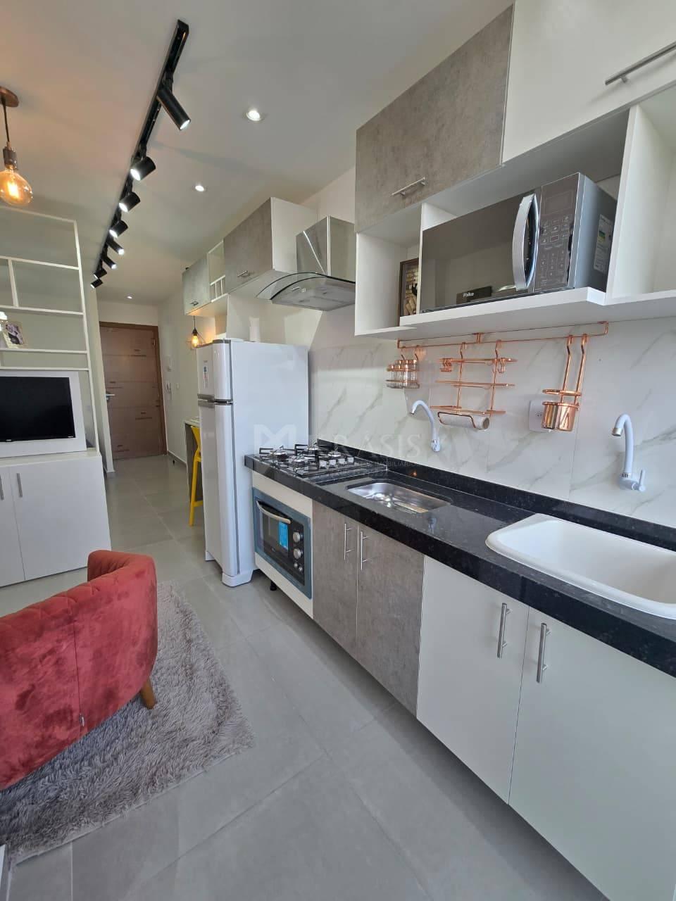 Com quarto, cozinha, banheiro, varanda
