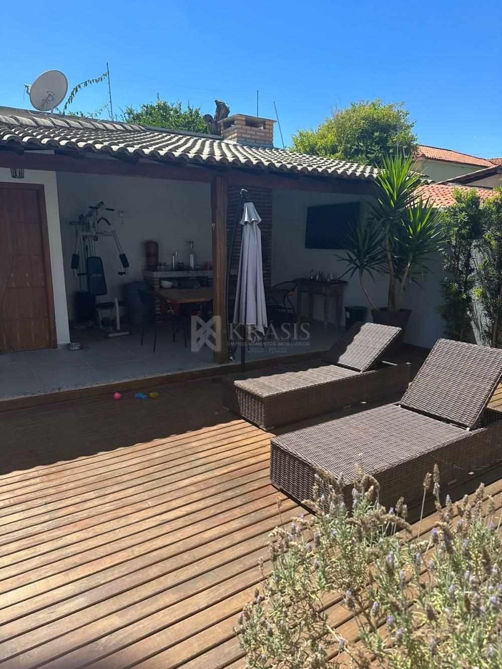 03 quartos (sendo 01 suite), sala, cozinha, banheiro, área de serviço, garagem (02), área de lazer completa com piscina e área de churrasco