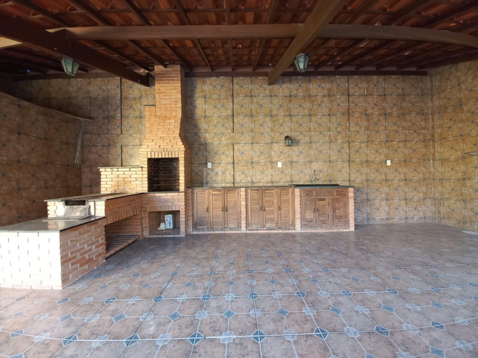 Área de lazer com churrasqueira, fogão a lenha, piscina, banheiro