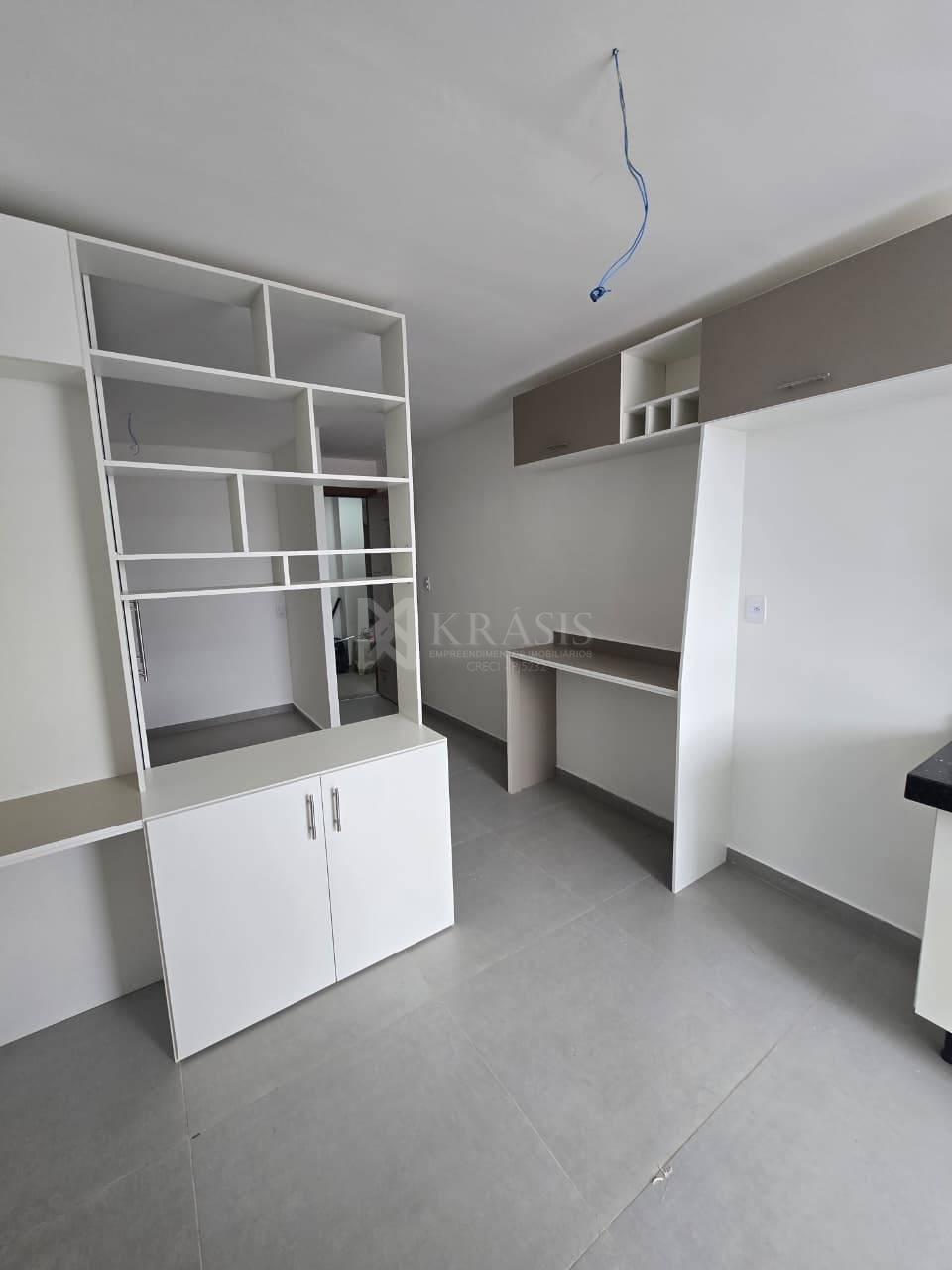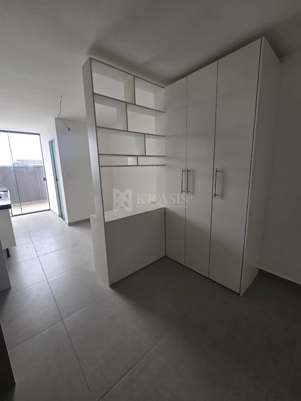 Com quarto, cozinha, banheiro e área privativa